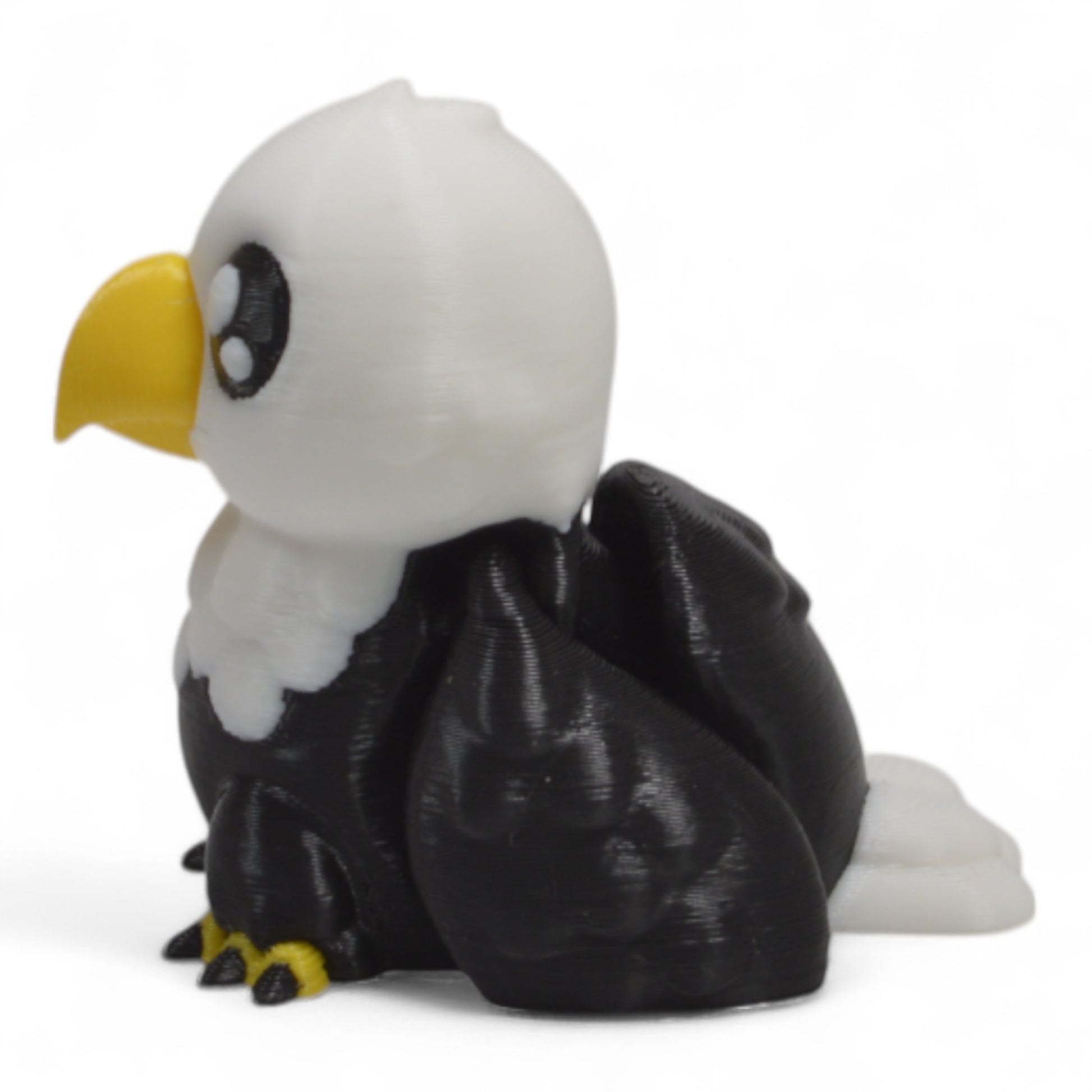 🎨 Gerçekçi Renkler: Siyah gövde, beyaz baş ve sarı gaga ile klasik kel kartal görünümü.
